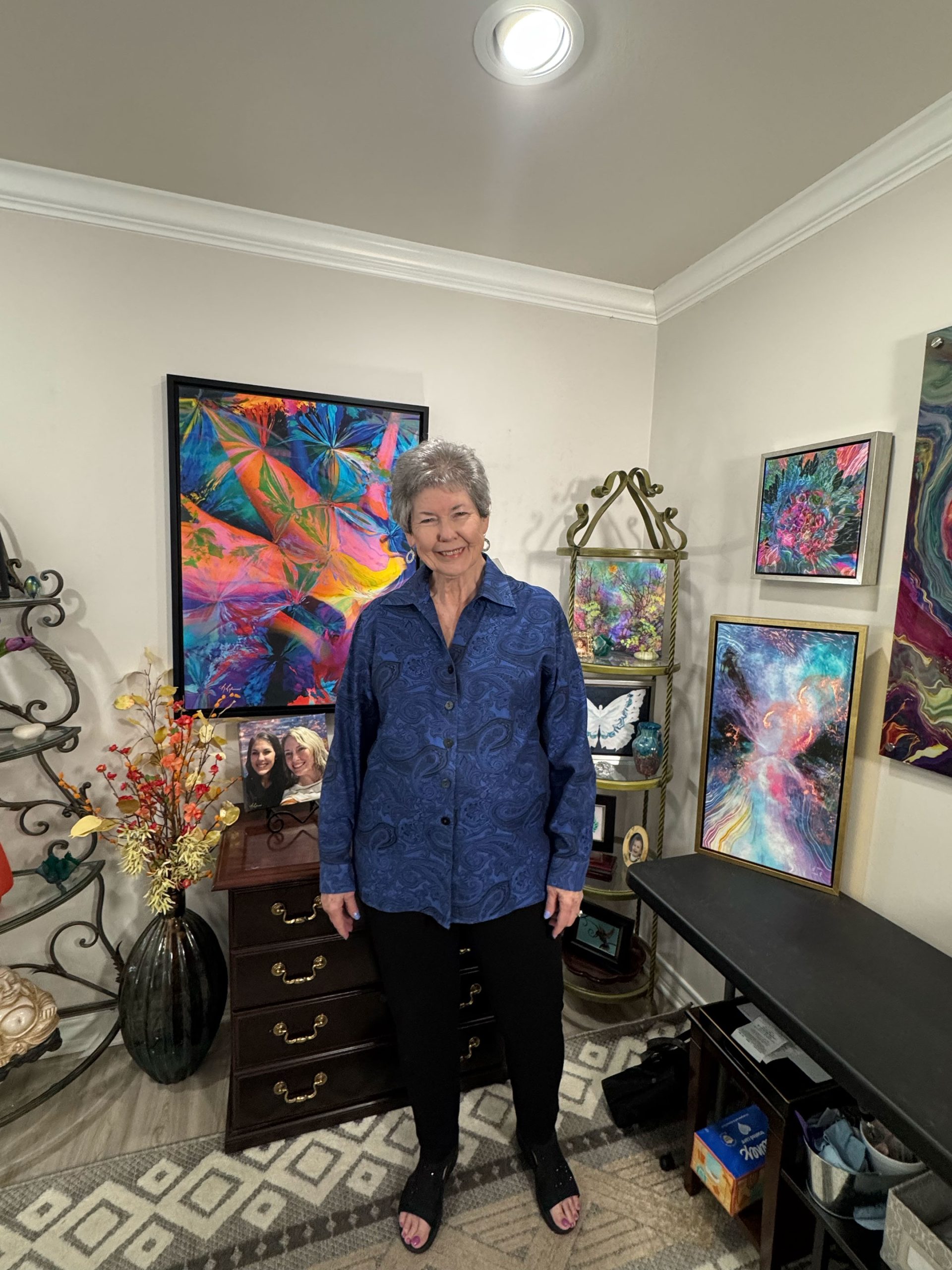 Sharon says “my artistic training began after I retired from a challenging and exciting, but completely unrelated professional career. Circumstances led me to recognize my unique talent for digital art. I eagerly began to use every possible means to train myself, practicing and modifying my technique until I eventually began to produce the more abstract form of beautiful wall art presented in this gallery. “