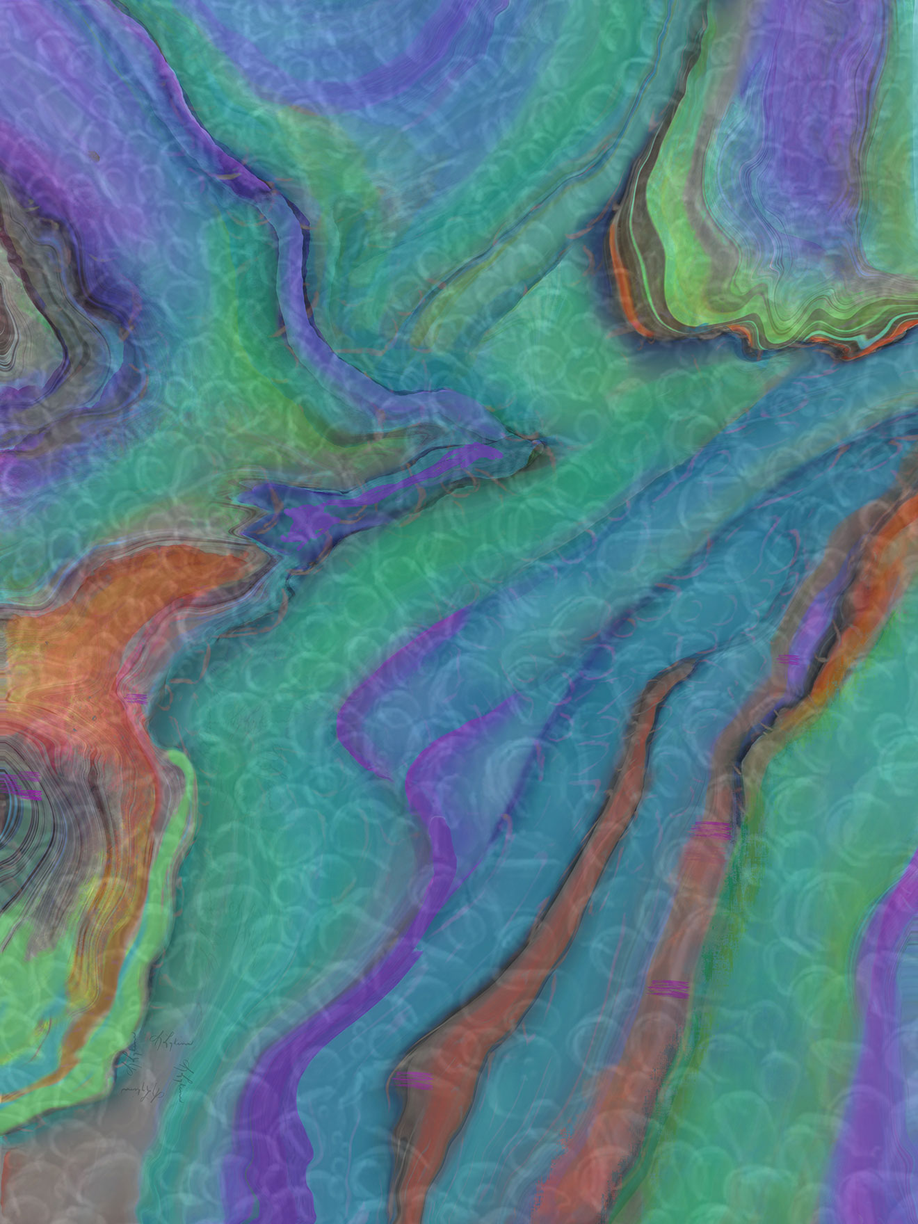 IN THE RAIN, S Lykins’ abstract digital painting of rain, leaving the subject open to interpretation. Looks terrific over a low light lamp.