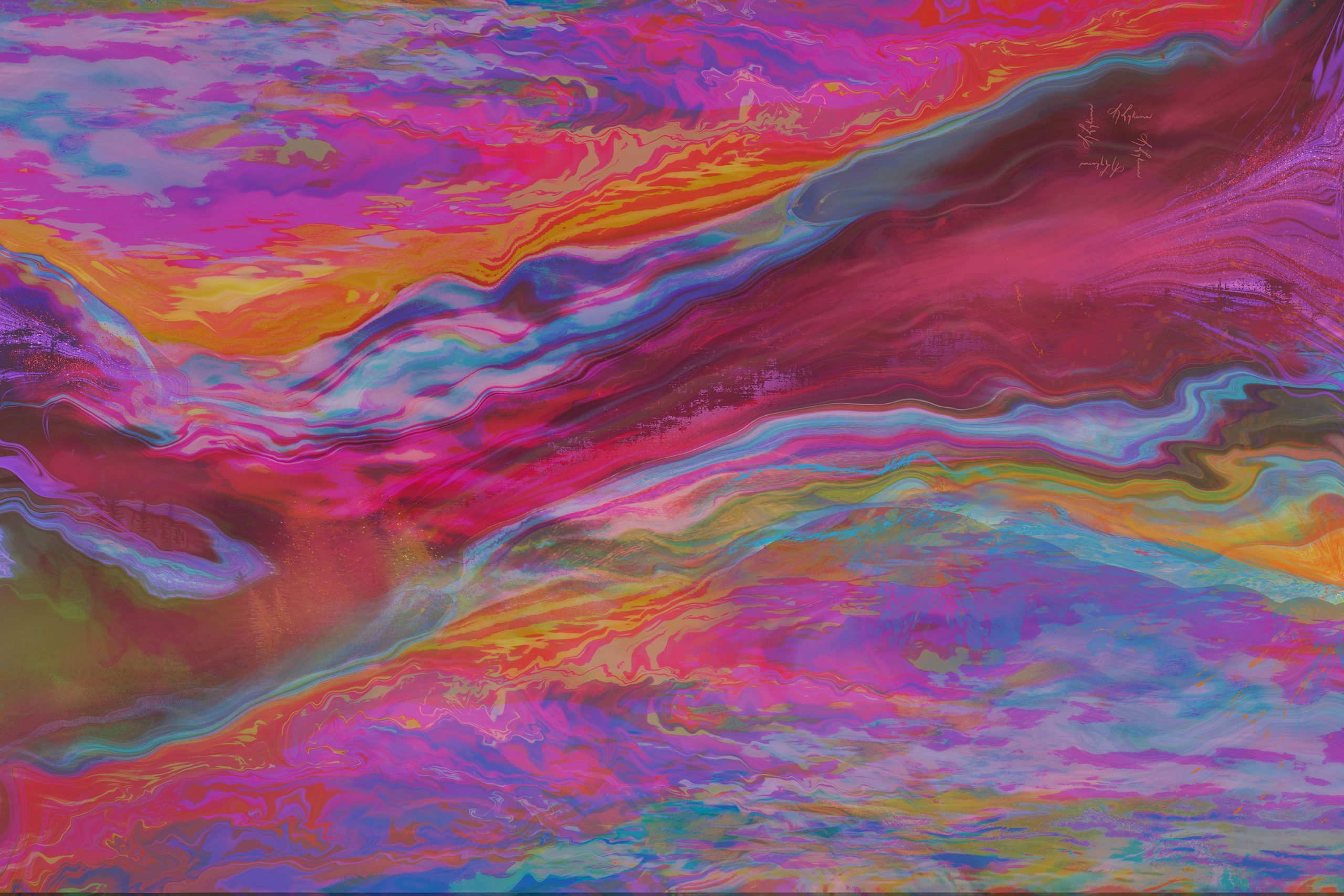 Melody, S Lykins’ digital abstract painting, a beautiful sunrise & sunset in an artwork that can be hung from any side. Moderate light