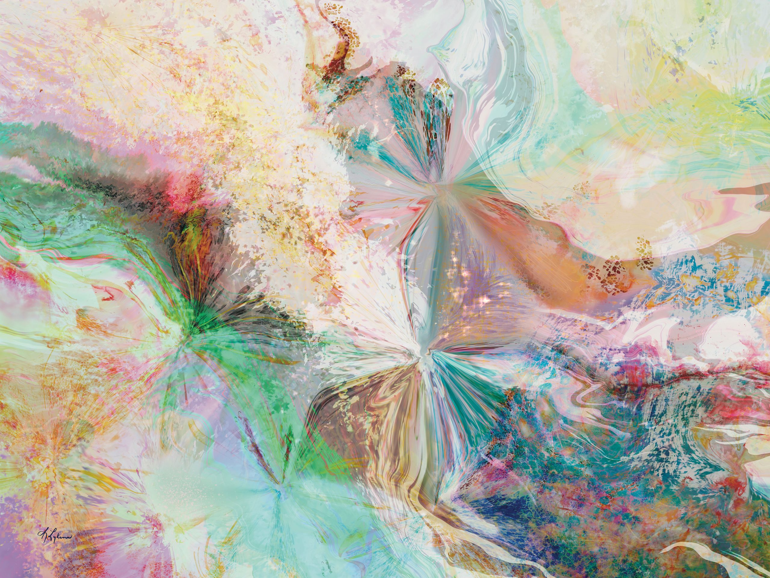 Twisting Sands, is S Lykins’ digital abstract painting, featuring beautiful textures & colors which resemble a fabric tapestry. Moderate Light +